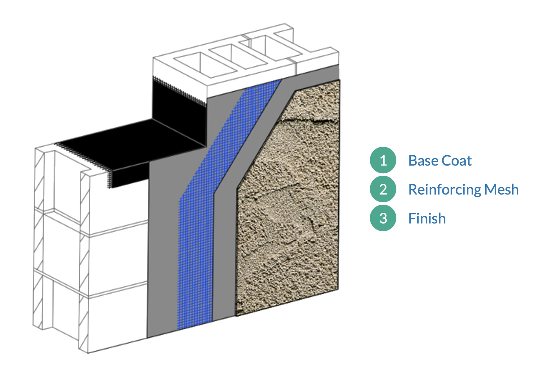 There are two TAFS™ options: Option 1 consists of Dryvit's tinted primer and finish, and is used primarily over rigid, highly impact-resistant walls, such as concrete or stucco. Other surfaces may be approved by Dryvit's Engineering Department. Option 2 consists of Dryvit base coat, fiberglass reinforcing mesh, tinted primer and finish. This combination must always be used over substrates such as Insulated Concrete Forms and EPS shapes. Option 2 provides an impact and crack resistant surface when used over EPS. Option 2 is also commonly used to enhance the appearance of uneven, pitted, or cracked stucco walls. Options: Custom Brick™ TerraNeo® Tuscan Glaze™ Ameristone™ Sandpebble® Stone Mist® Quarzputz Sandblast Freestyle Sandpebble Fine