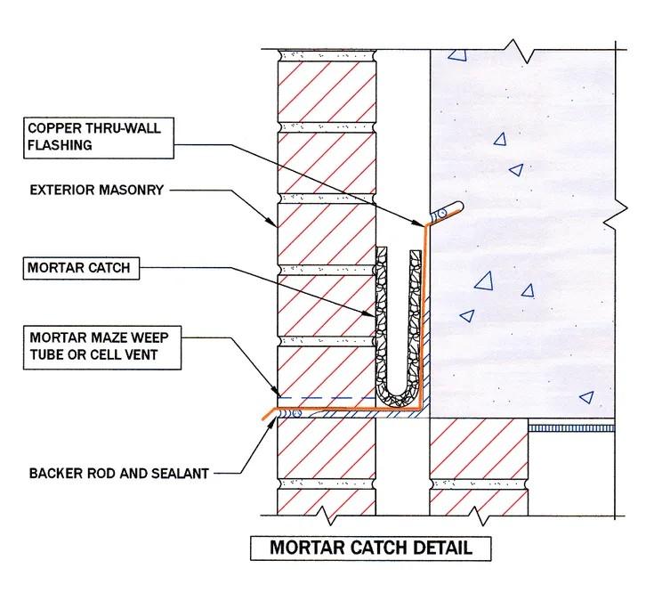 Install mortar deflection devices as part of masonry wall construction