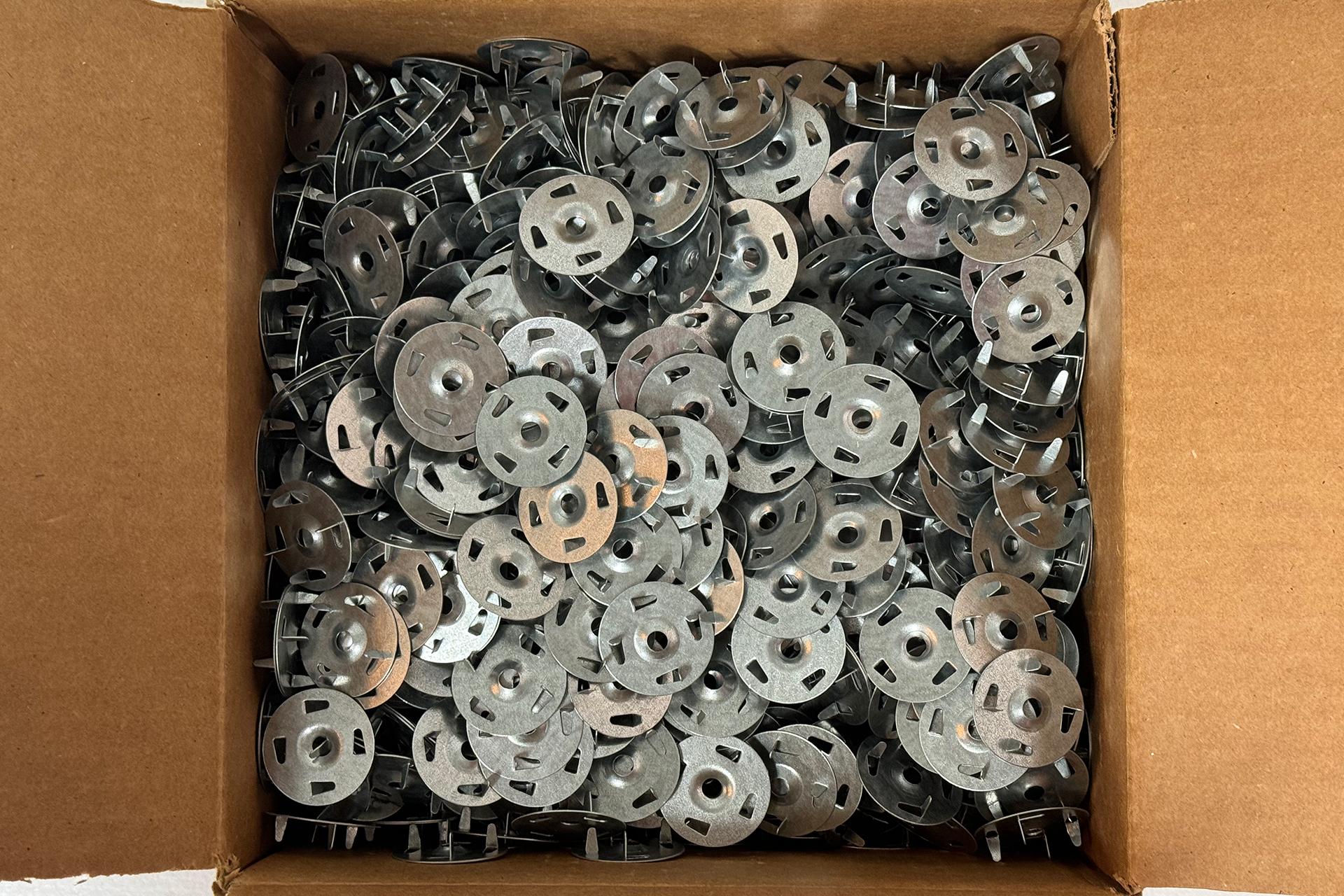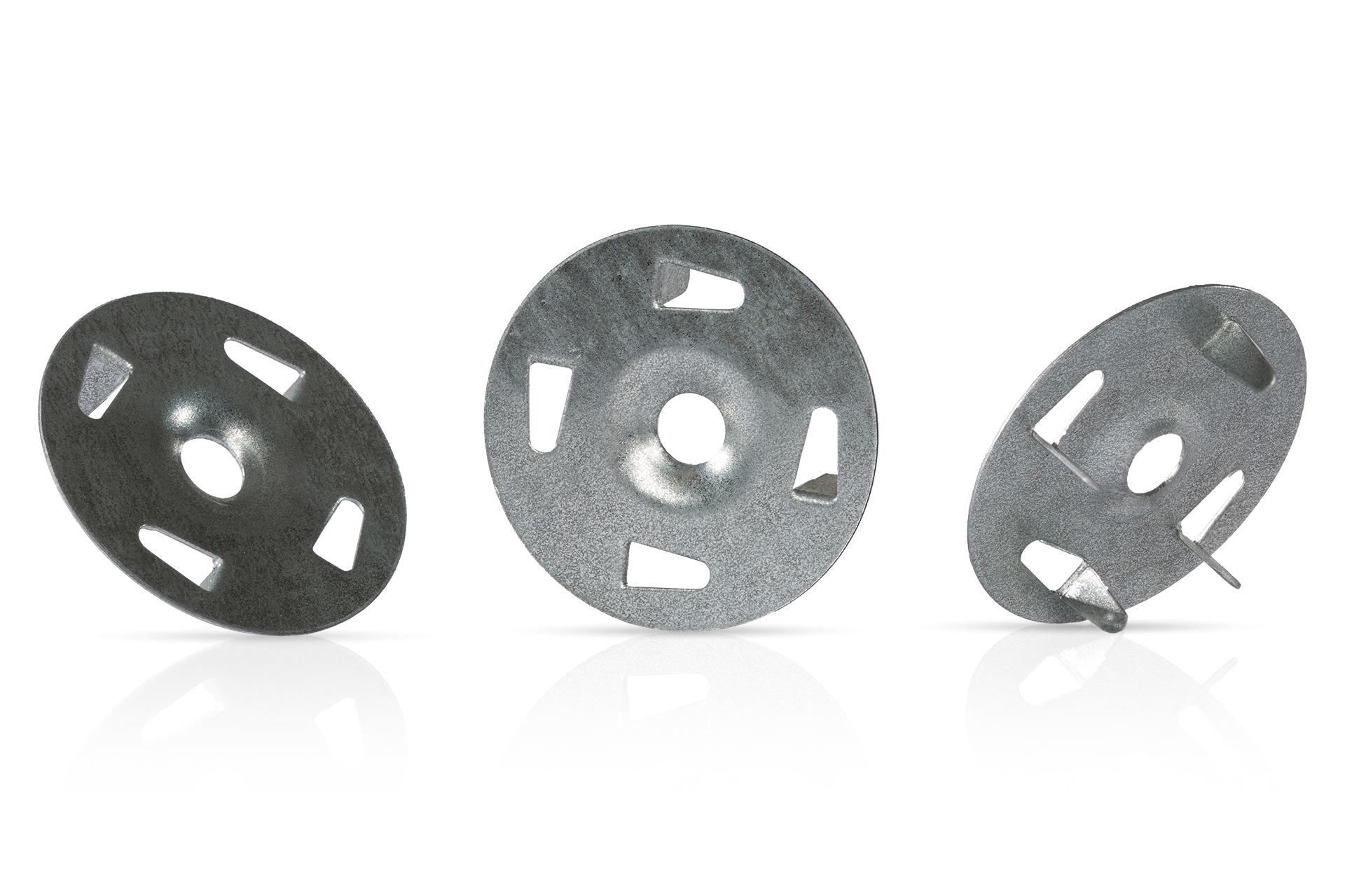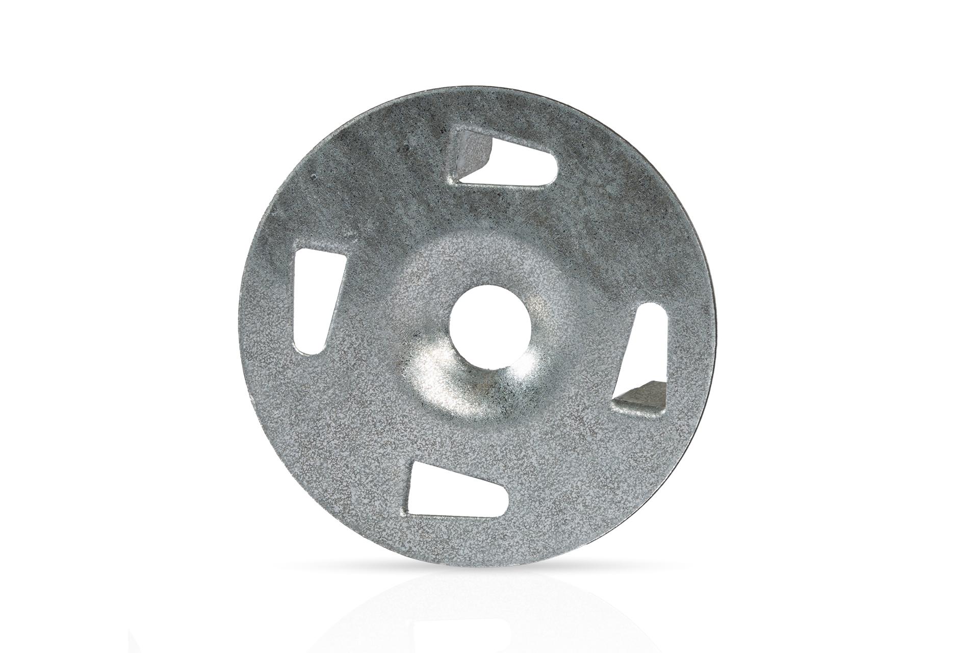 1-1/4" diameter galvanized steel washer for securing metal lath wire or foam to different substrates.