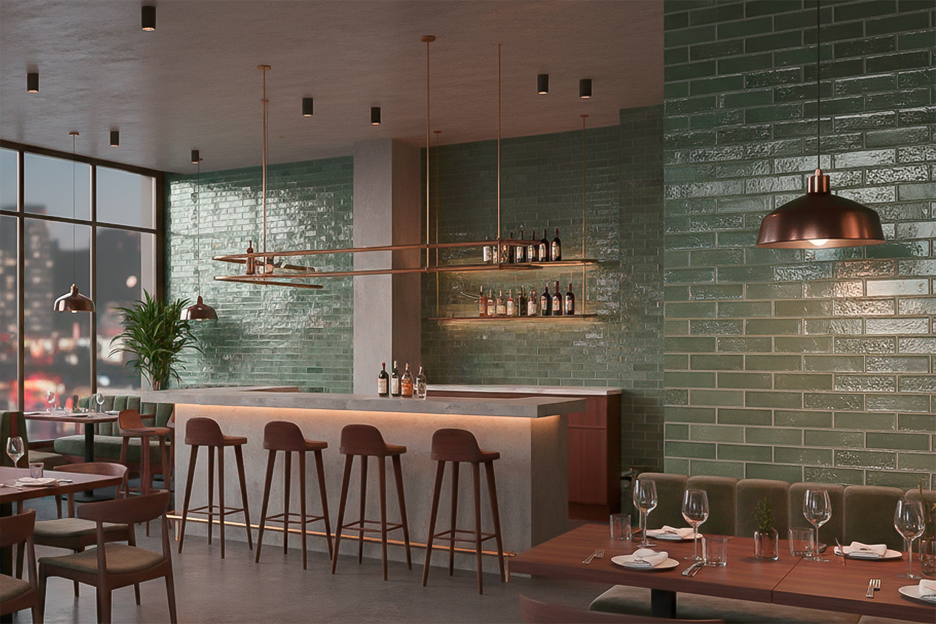 Order a sample board of Forest Green Glossy Velour thin brick to experience its true texture, color, and craftsmanship firsthand.