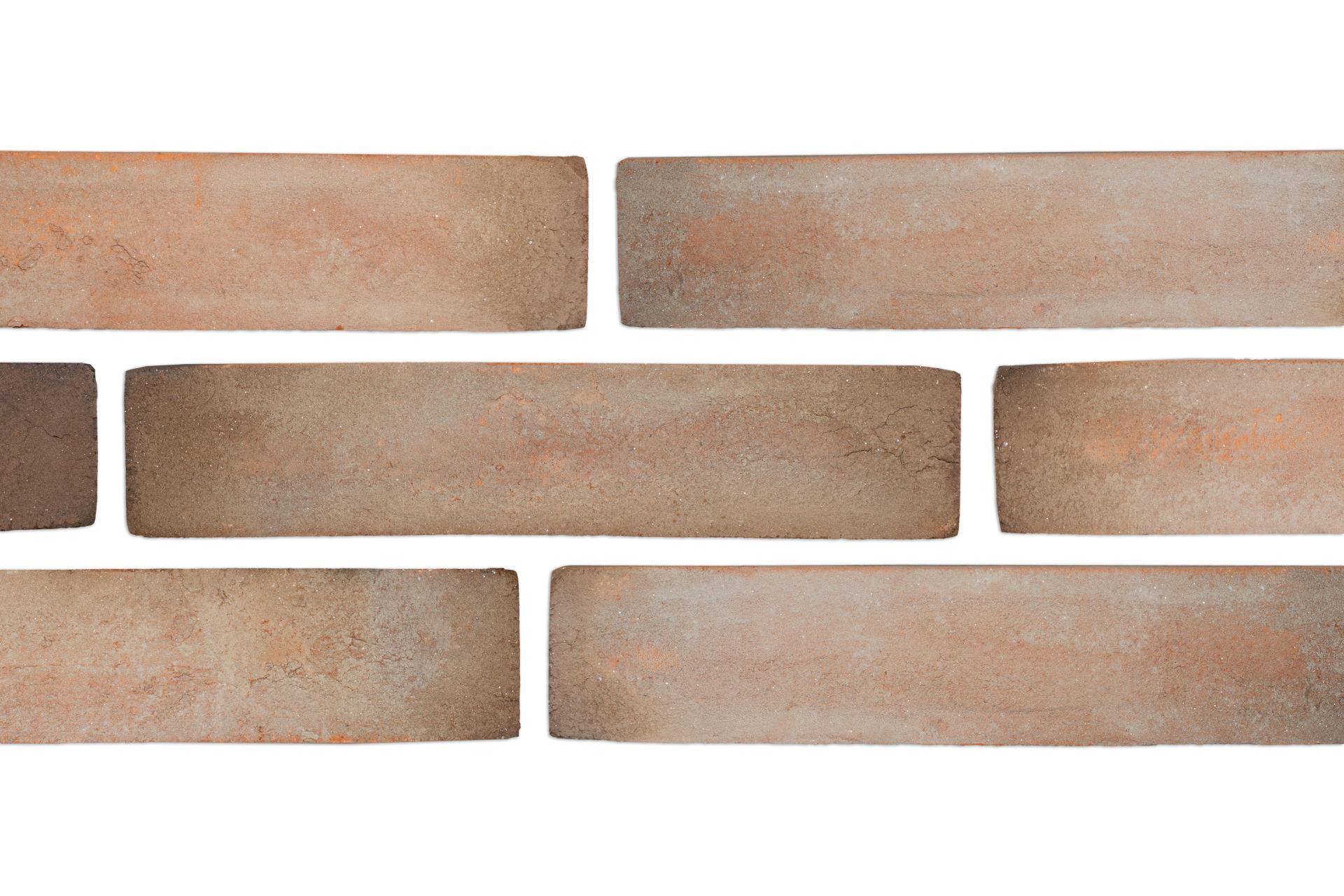 Molded Full Bed Brick is produced in wooden molds. This process delivers two usable sides of brick, allowing us to achieve two thin bricks out of one full one. However, we only get one corner out of one full brick.