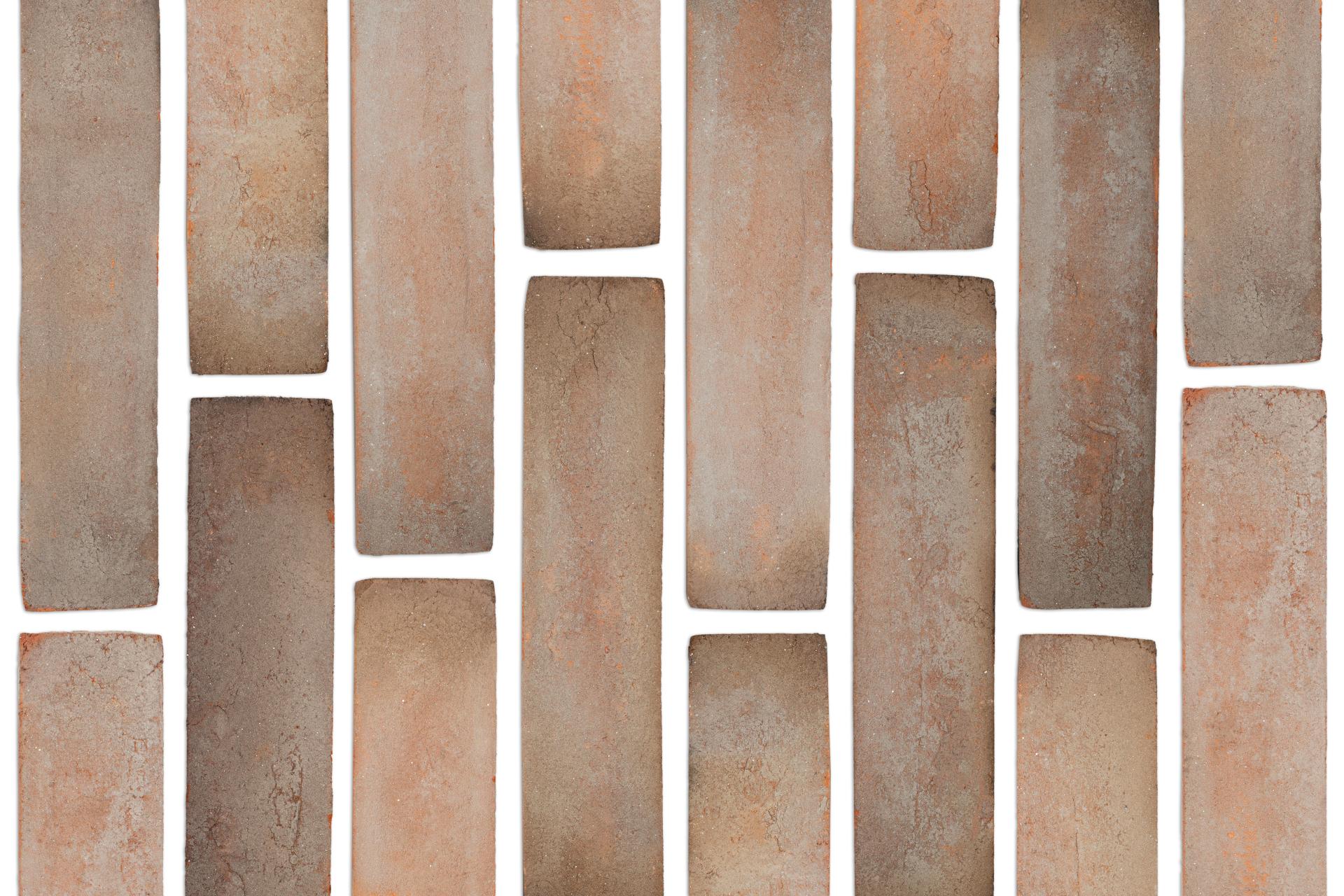 Molded Full Bed Brick is produced in wooden molds. This process delivers two usable sides of brick, allowing us to achieve two thin bricks out of one full one. However, we only get one corner out of one full brick.