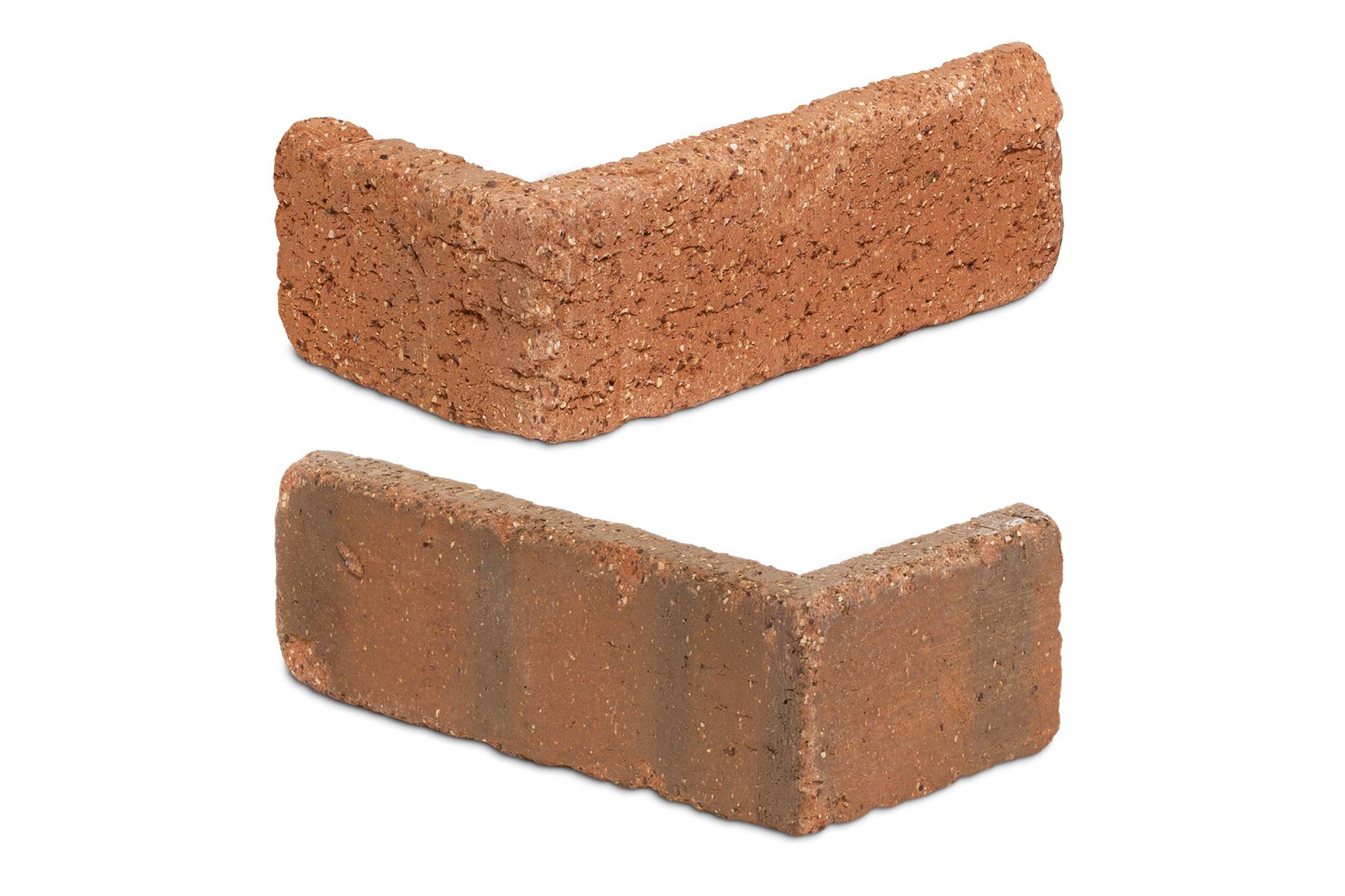 Molded Full Bed Brick is produced in wooden molds. This process delivers two usable sides of brick, allowing us to achieve two thin bricks out of one full one. However, we only get one corner out of one full brick.