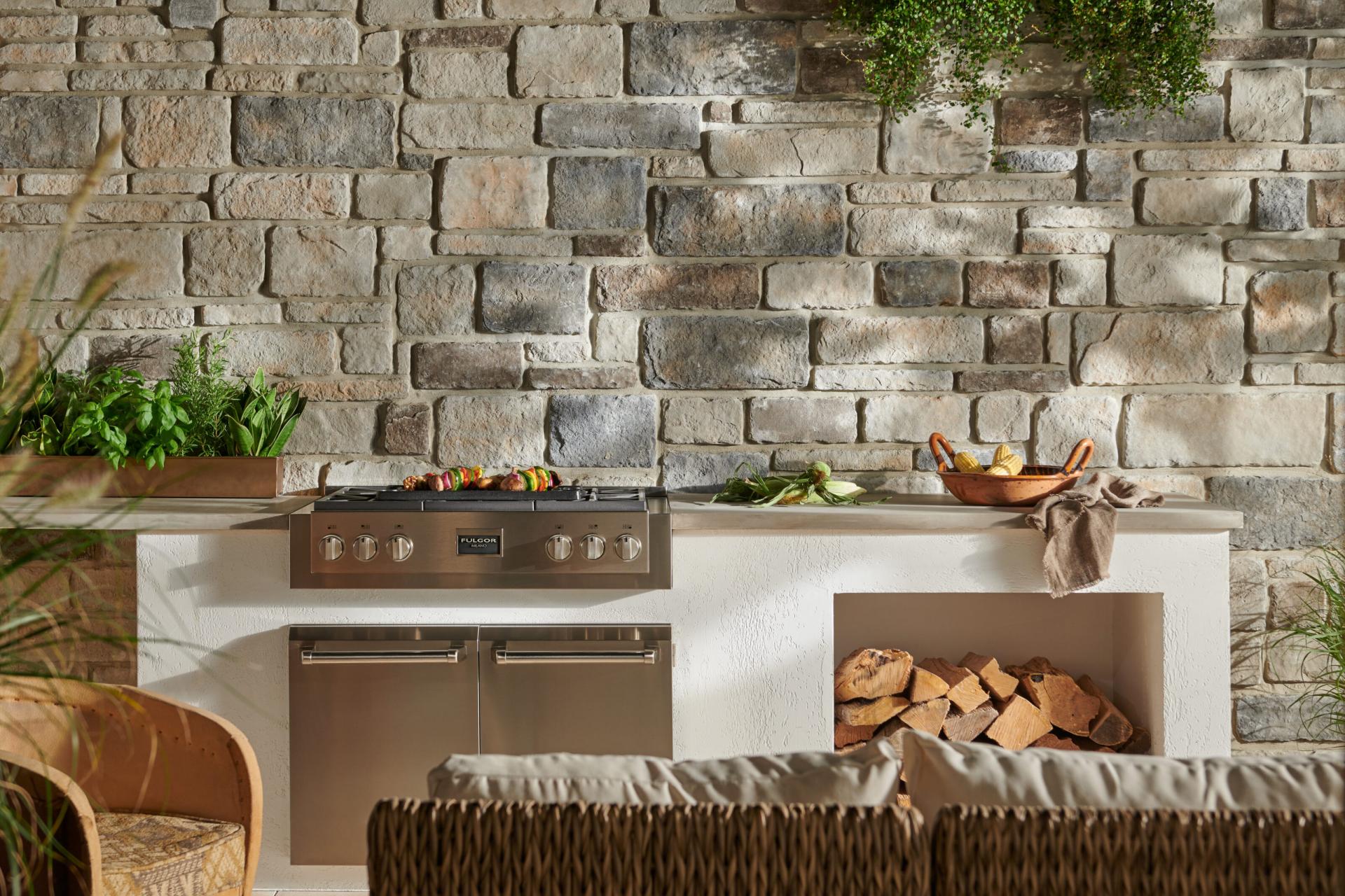 Order a sample board of Sculpted Ashlar, Echo Ridge thin stone to experience its true texture, color, and craftsmanship firsthand.