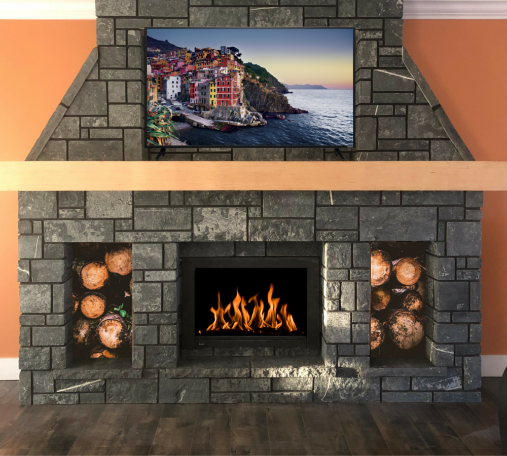 Order a sample board of Pangaea Natural Stone 3 Course Ashlar, Klondike thin stone to experience its true texture, color, and craftsmanship firsthand.